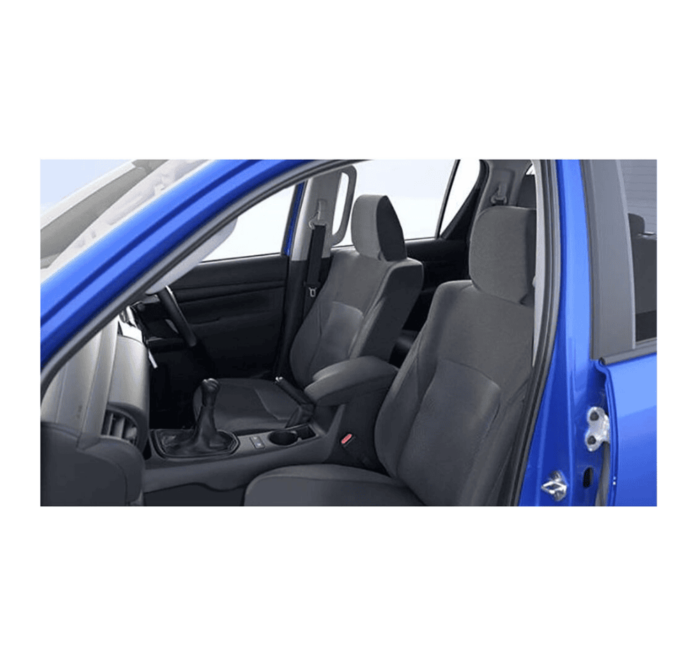 Enhance and protect your vehicle's interior with our HiLux seat covers. Tailor-made to provide a snug and protective fit, these high-grade fabric covers offer comfort and durability whilst ensuring items such as seat belt buckles, child restraints, and seat side airbags remain fully accessible. Each cover is easy to remove and machine washable.