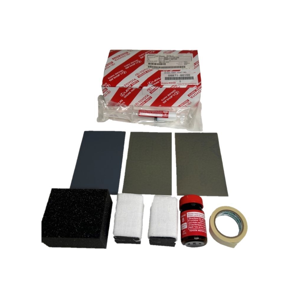 Restore your vehicle’s headlights with the Genuine Toyota Headlight Cleaning & Refurbishment Coating Kit. This kit enhances headlight appearance, meets roadworthy standards, and improves night-time light output.