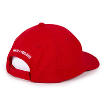 6 panel sports cap made with pique mesh for breathability. Features pre-curved peak, UPF 50+ rating and adjustable Velcro closure.