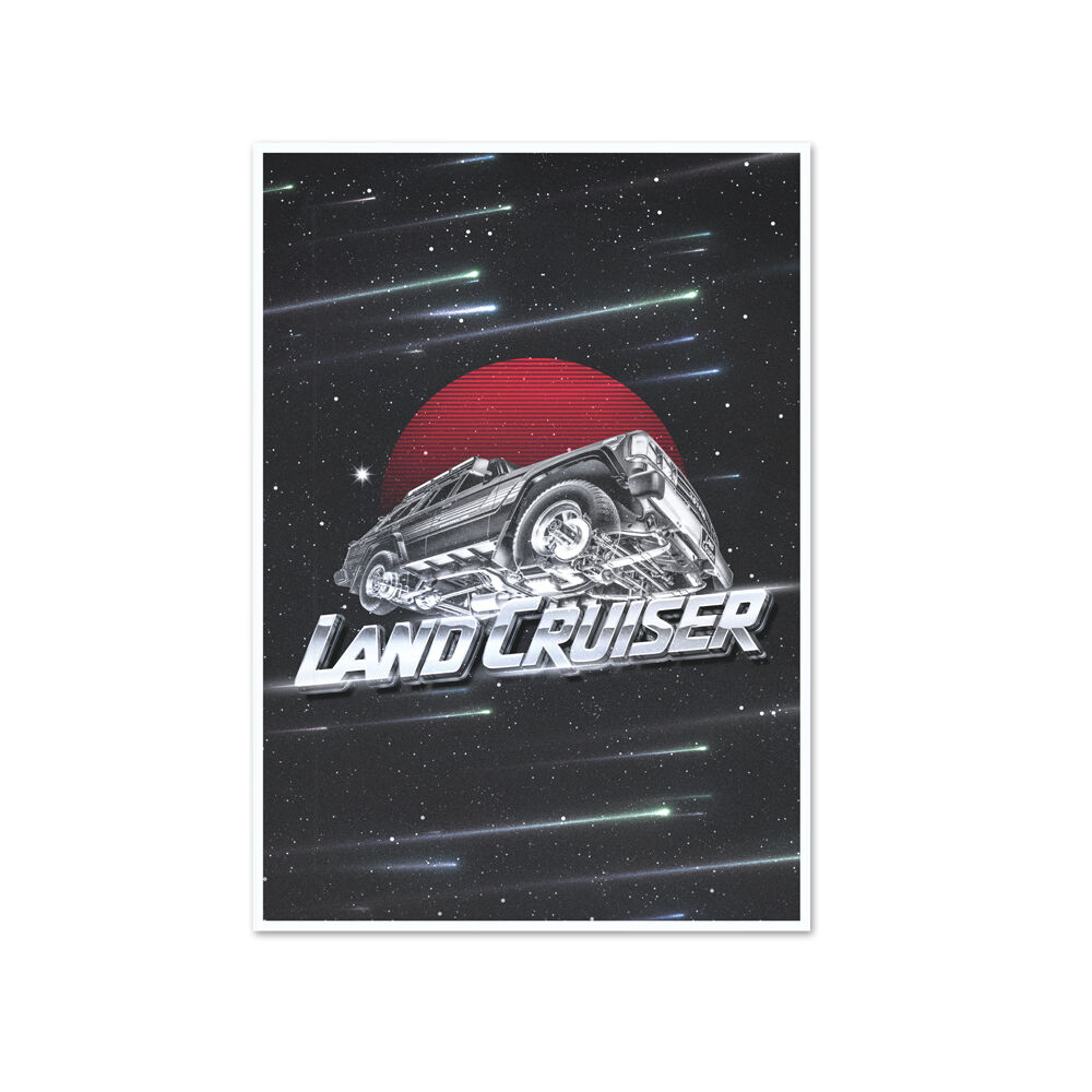 A tribute to the adventurous spirit of the Toyota LandCruiser, the Shooting Stars A2 Poster captures the iconic LandCruiser Sahara as it journeys from the desert to the stars. Set against a stunning cosmic backdrop, this full-color print is crafted on 200gsm satin finish paper for a vibrant, durable look that brings the legendary 4x4 to life.