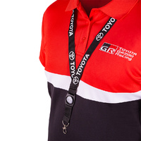 20mm lanyard with swivel metal hook, breakaway clip at neck and gloss Toyota branded button.