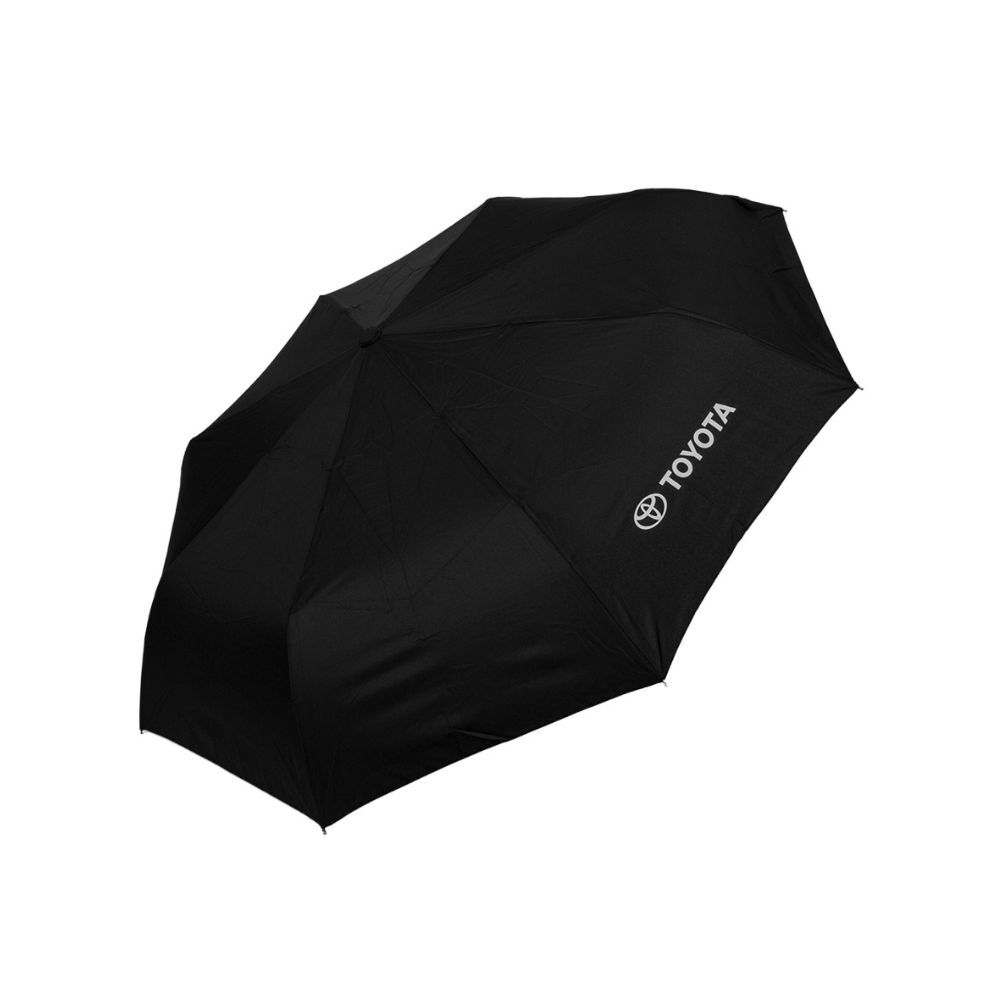 Reliable protection from rain or sun, the Toyota Compact Umbrella combines practicality with a sleek design. Featuring automatic open and close, a durable pongee canopy, and a strong fibreglass and metal frame, it’s built to last. The chrome-finished steel shaft and soft-touch handle provide comfort, while the Toyota logo screen printed in white on one panel adds a premium branded touch. Ideal for corporate gifts, promotional merchandise, commuting, travel, or everyday use.